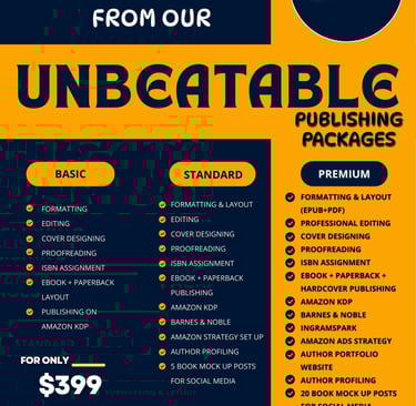 We offer a wide range of publishing services to help authors and publishers bring their books to market. From editorial and design to distribution and marketing, we are committed to providing high-quality, affordable solutions that meet your unique needs. Your breathtaking ideas are transmuted in reality here, and we're all about helping your inner voice emerge. We create exclusive books inspired by your personal style, selected genre, and taste. Our team uses their eye for detail and high-quality content to deliver a range of services.